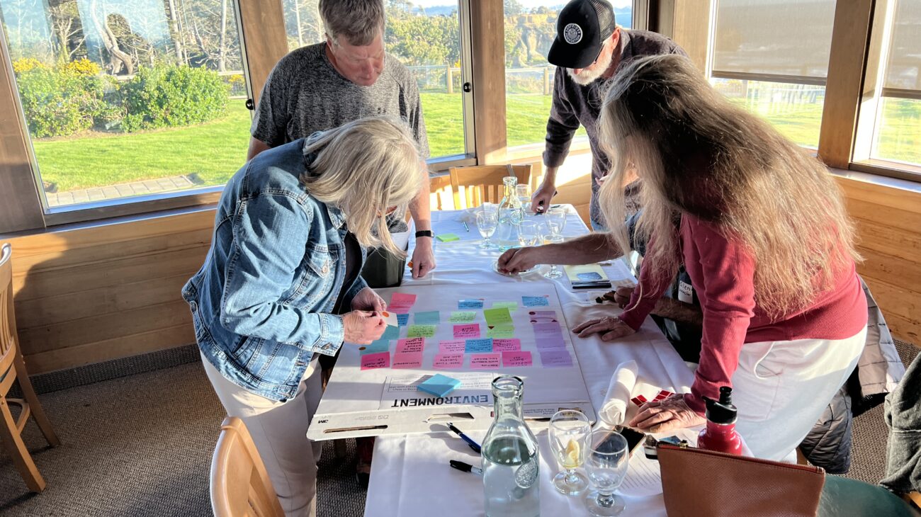 ODFW is building a long-term plan to better understand how people use, relate to, and value the marine reserves. This will help us continue to assess the positive and negative effects of marine reserves on coastal communities over time. To support the development of this plan, ODFW partnered with graduate students from the University of California Davis (UC Davis) Environmental Policy and Management Program to host community meetings near each of the five marine reserves throughout April 2025. Amanda Gannon, ODFW Sea Grant Natural Resource Policy Fellow and Adaptive Management Coordinator, and Dr. Sarah Klain, the ODFW Marine Reserves Human Dimensions Project Leader at the time, organized meetings near the reserves in Lincoln City, Nehalem, Otter Rock, Yachats, and Port Orford. Over 80 people including commercial and recreational fishermen, business owners, members of conservation organizations, coastal residents, and others shared their thoughts on human-focused indicators that can help answer the question “how do Oregon’s marine reserves impact your well-being?