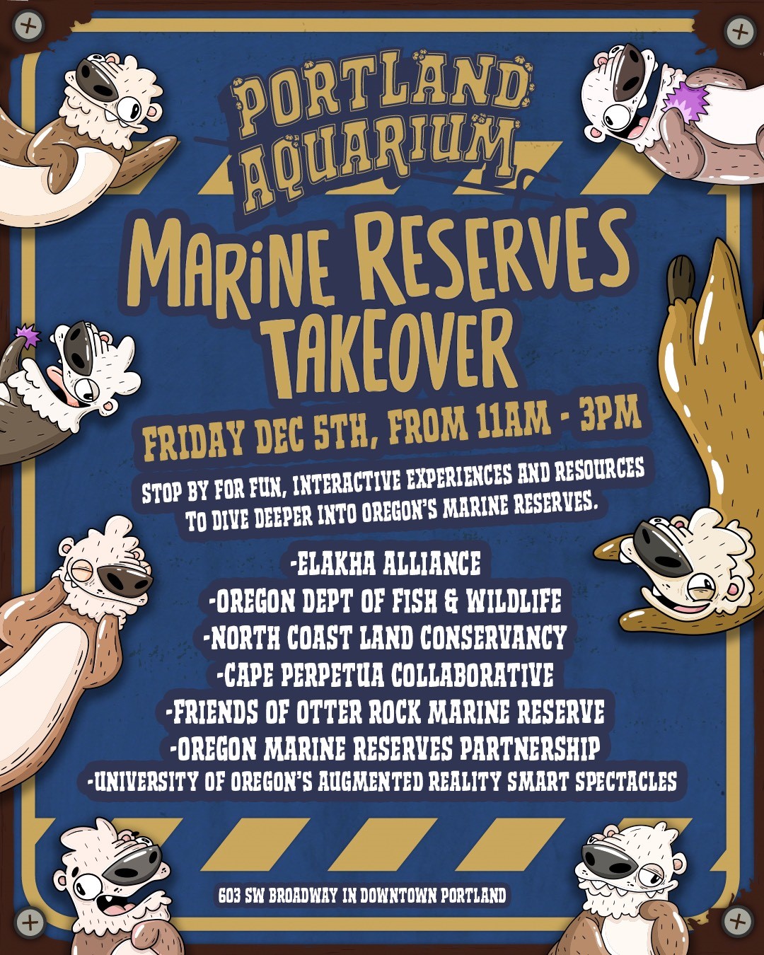 Stop by and visit ODFW, North Coast Land Conservancy, Cape Perpetua Collaborative, Friends of Otter Rock Marine Reserve, and the Oregon Marine Reserves Partnership at the Portland Aquarium for fun, interactive experiences and resources to dive deeper into Oregon's marine reserves.